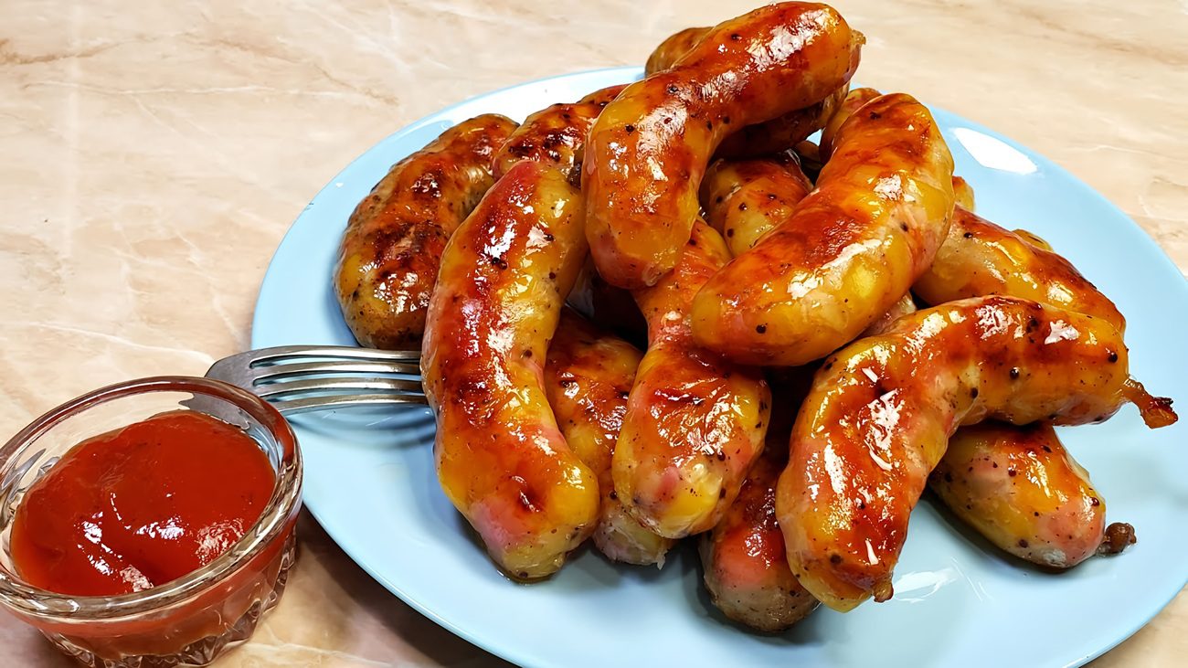 Готову ковбаску подаємо до столу гарячою, так вона смакує найкраще.