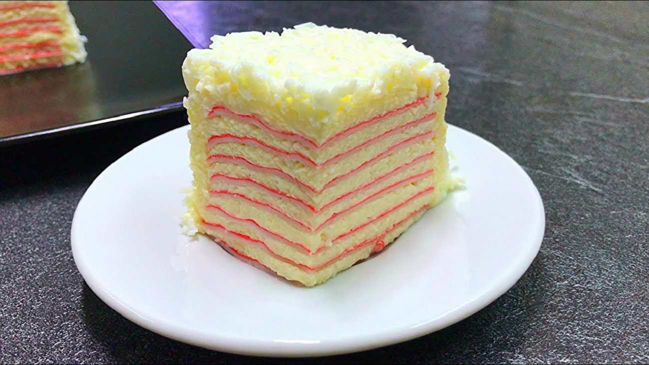 Беремо миску для подачі і починаємо формувати крабовий тортик. Викладаємо лист крабової палички та змащуємо її сирною начинкою. Тепер знову кладемо крабовий лист і так повторюємо шар за шаром, поки не закінчаться всі інгредієнти.