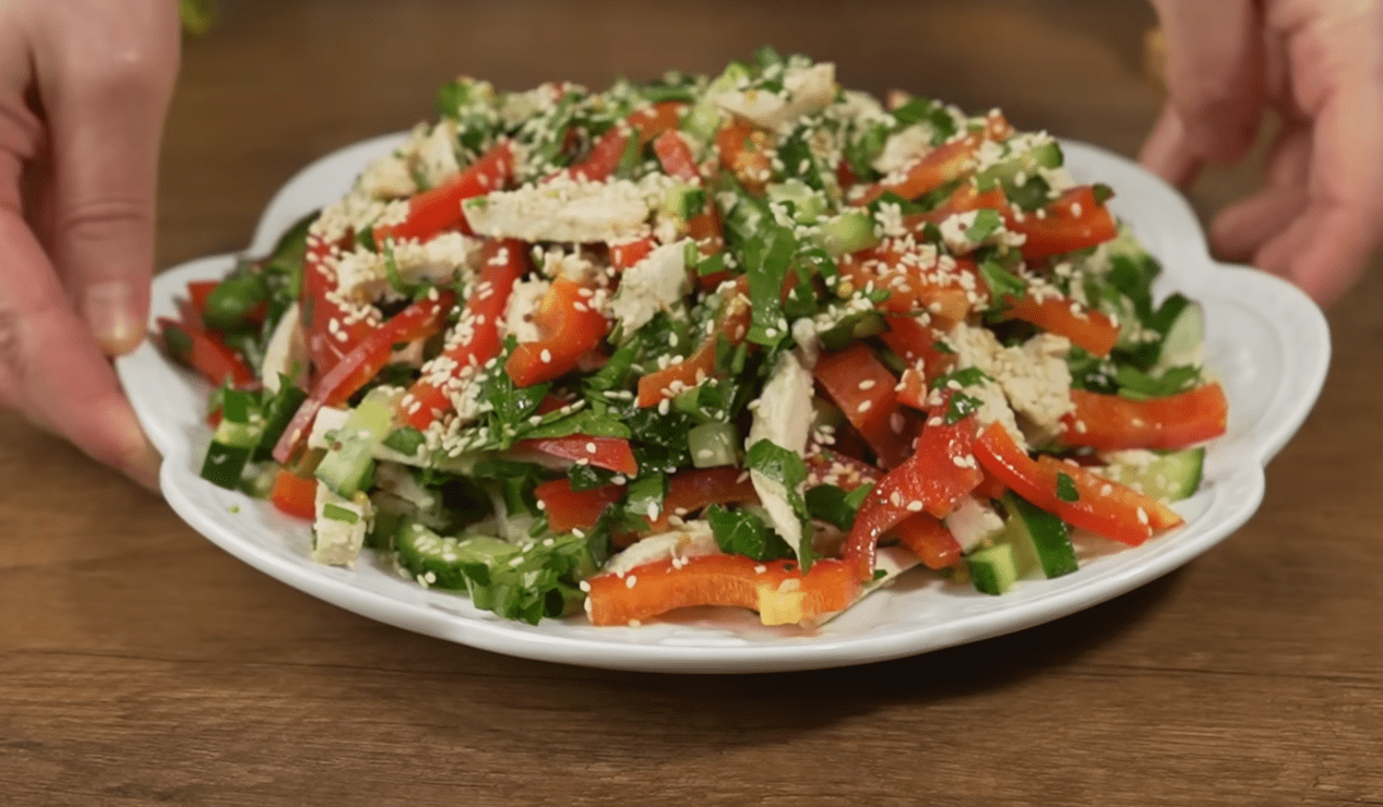 Так, львів’янки поділилися рецептом простого, але дуже смачного салату “Родина”, в якому немає майонезу та цибулі, зате є достатньо овочів, ніжна курка, які заправлені вишуканим соусом та кунжутом.