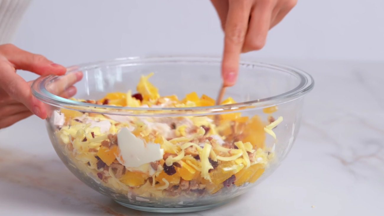 Останній інгредієнт – заправка Майонез. Все перемішуємо та можна подавати до столу.