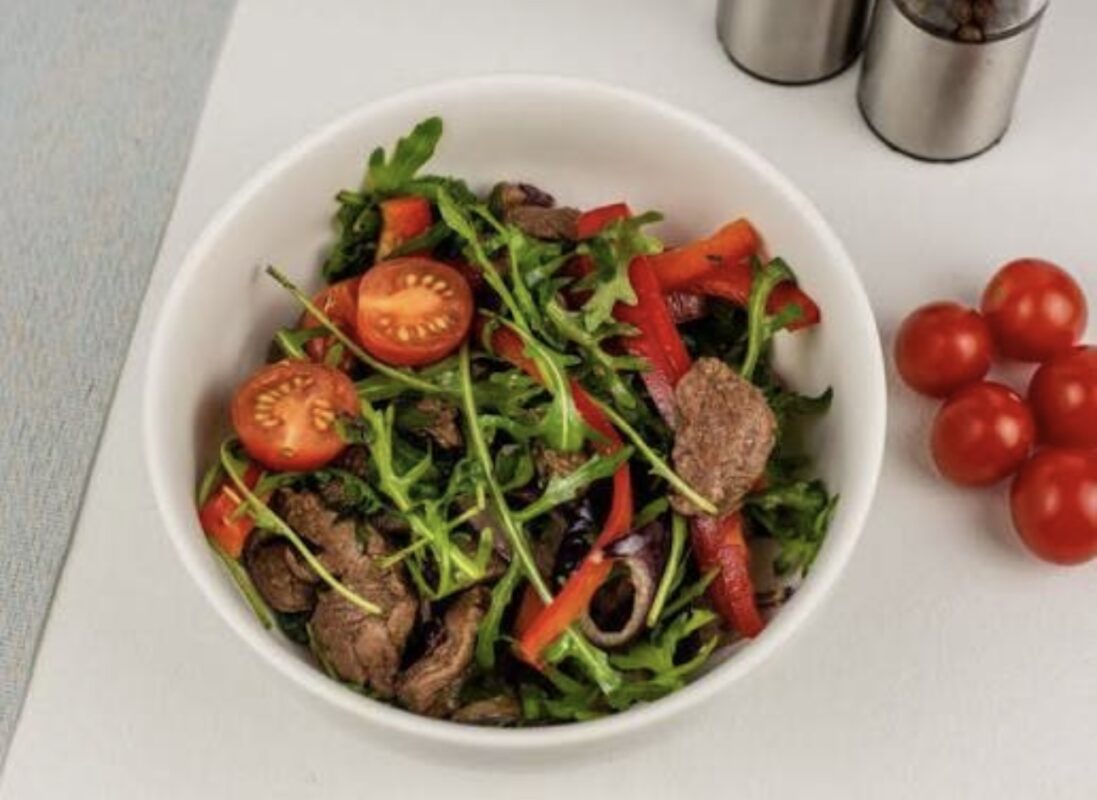 Головний герой салату – телятина, м’яка, соковита та ніжна, вона забезпечує насичений смак і білок, необхідний для енергії. Для салату телятину краще легко обсмажити на сковороді або швидко відварити до готовності, щоб вона залишалася соковитою і не втратила ніжності. Саме якісне м’ясо робить цю страву ситною і “чоловічою” на смак.