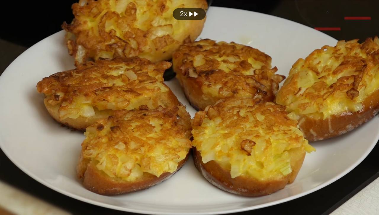 Особливість цих бутербродів у тому, що цибулю подрібнюють і змішують із сиром, яйцем і невеликою кількістю борошна, щоб начинка була ніжною, однорідною і легко трималася на хлібі. Така суміш перетворює звичайний батон у ароматну та ситну страву, яку можна подавати як на сніданок, так і на перекус.