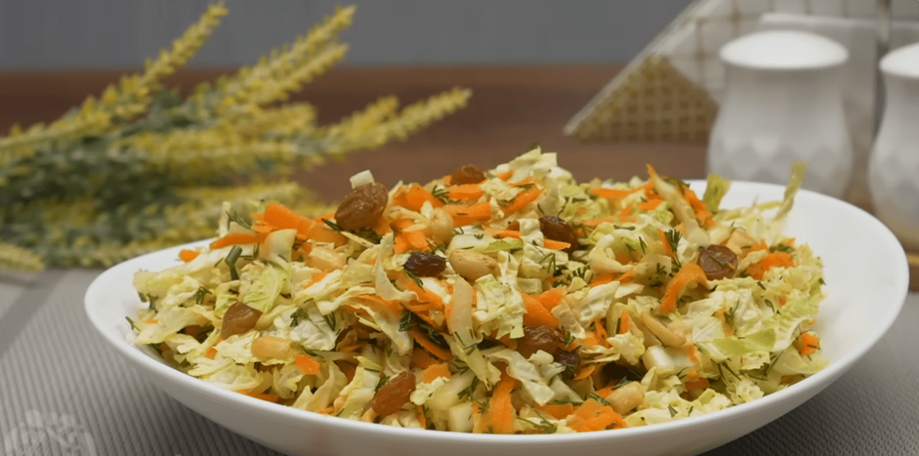 Ось салат з пекінської капусти з родзинками, що відмінно підійде на пісний стіл