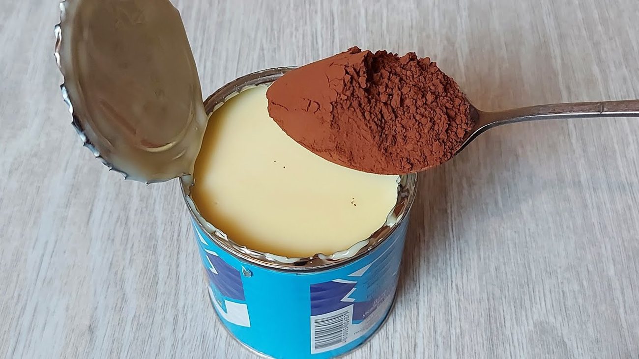 У миску переливаємо згущене молоко і додаємо до нього какао-порошок. Обирайте смачний і якісний какао-порошок з насиченим смаком.