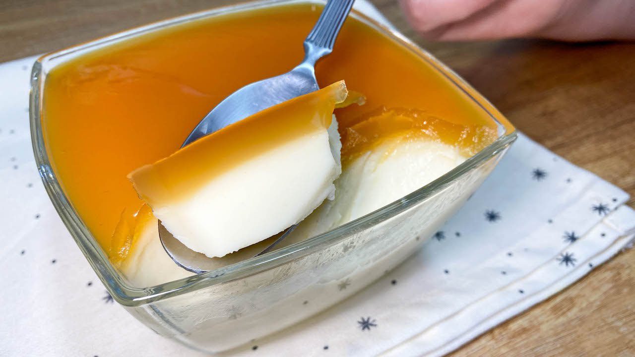 Десерт має м’яку, делікатну текстуру та приємний насичений смак. У складі цього десерту немає желатину, тому його консистенція зовсім не “гумова” — вона ніжна і більше нагадує повітряний крем, ніж класичне молочне желе.