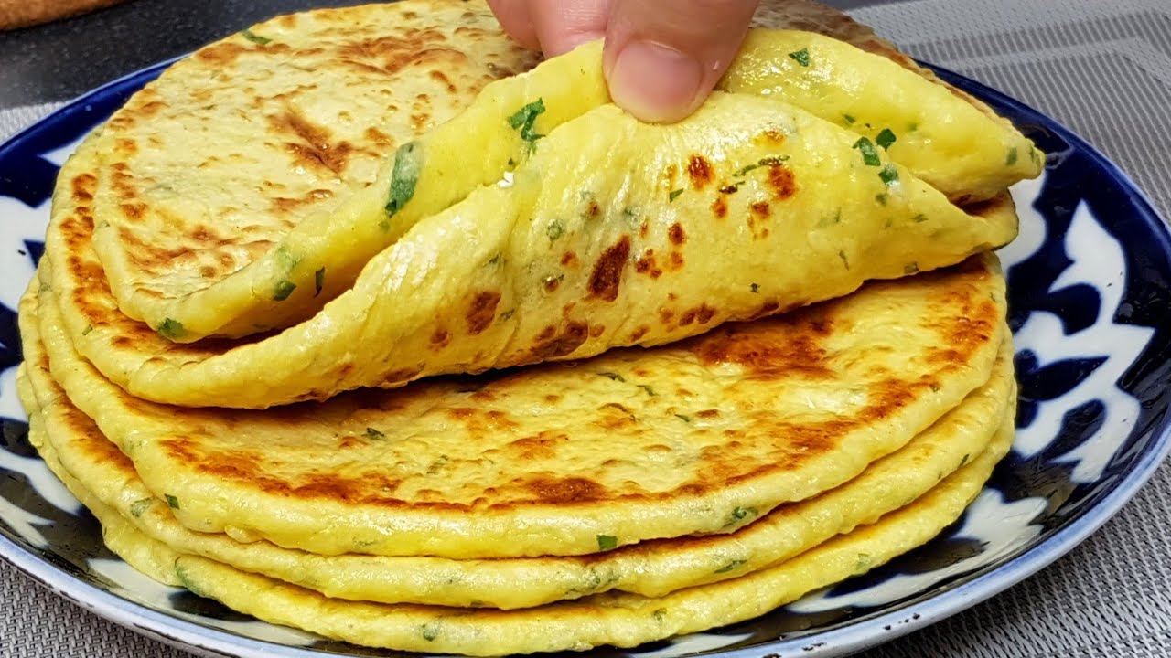 4 картоплини та ложка борошна – тонкі коржі з сиром та зеленню. Готуються за 15 хвилин
