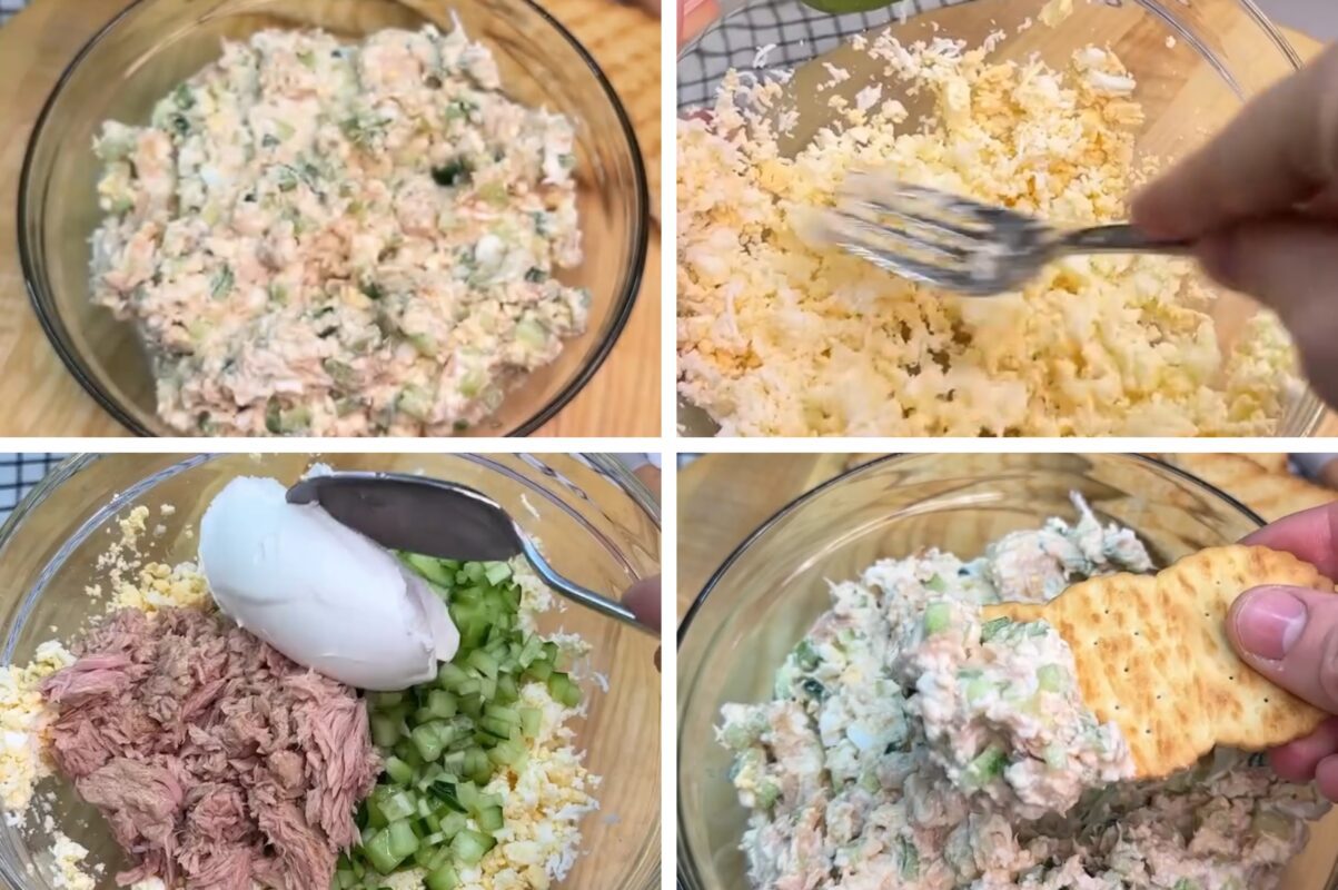 Попередньо яйця потрібно відварити, після чого розім’яти виделкою. Огірки теж слід нарізати на маленькі кубики, потім додати тунець, крем-сир і сіль. Всі інгредієнти гарно перемішуємо і все. Готову намазку можна подавати разом із хлібом або хрумкими грінками.