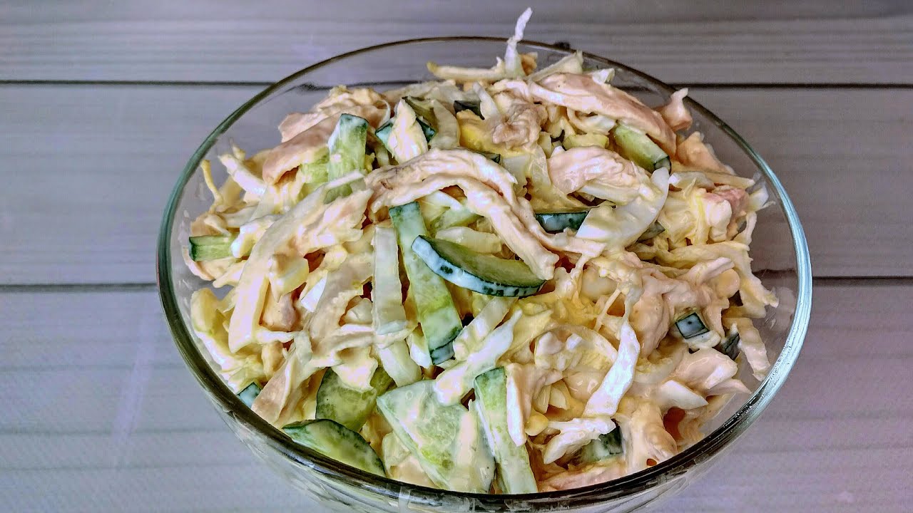 Салат з пекінською капустою та куркою – це поєднання ніжних овочів і неперевершеного аромату копченого курячого м’яса. Ледь помітний акорд родзинок доповнює страву солодкими і трохи кислуватими нотками. Цей вітамінний і поживний салат – легкий у приготуванні і виходить дуже смачним. Просто ідеальний варіант для швидкого обіду, домашньої вечері або ж святкового столу.