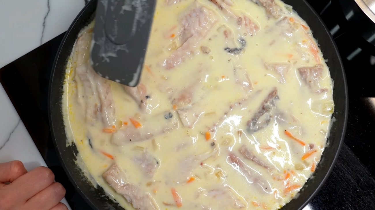 На приготування цієї страви потрібно максимум 30 хвилин, тому її можна легко приготувати на звичайному туристичному пальнику під час відключення світла. Тільки будьте обережні, цей рецепт із звичайним хеком у найніжнішому вершковому соусі викликає 100% залежність настільки смачною та соковитою виходить риба. Така вечеря сподобається навіть дітям.