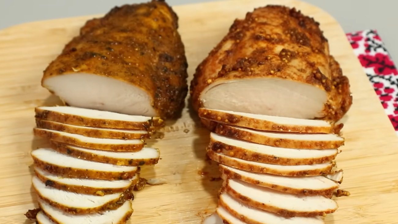 Відправляємо філе запікатись. Через 15 хвилин вимикаємо духовку. Залишаємо грудку всередині до повного остигання духовки на 3-4 години. У жодному разі не відкривайте духовку. За цей час ваша грудка повністю приготується.