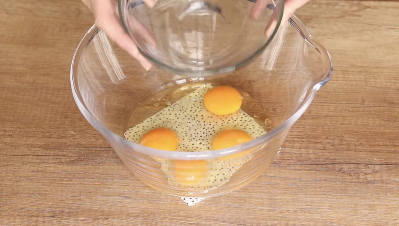 Яйця потрібно розбити в миску, додаючи сіль, чорний перець, після чого суміш збити вінчиком. Наступним кроком вливаємо молоко та гарно все перемішуємо. Додаємо борошно поступово, щоб уникнути появи грудочок.