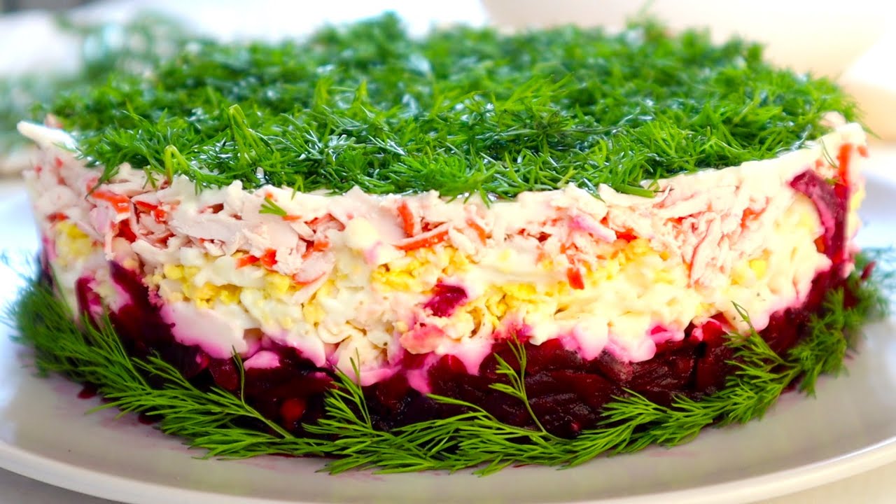 Рецепт салату Рожевий Фламінго з буряком і крабовими паличками