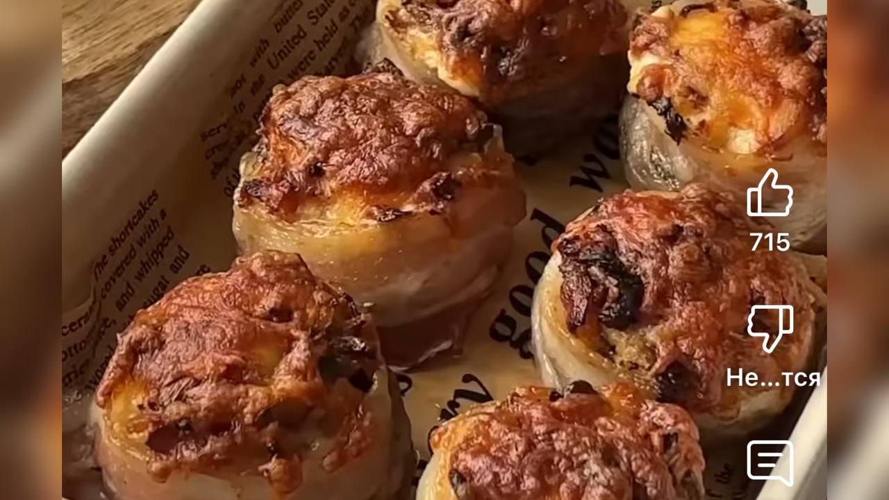Фото: Запечені грибочки в беконі,дуже соковиті і запашні. YouTube: yuliia.senych