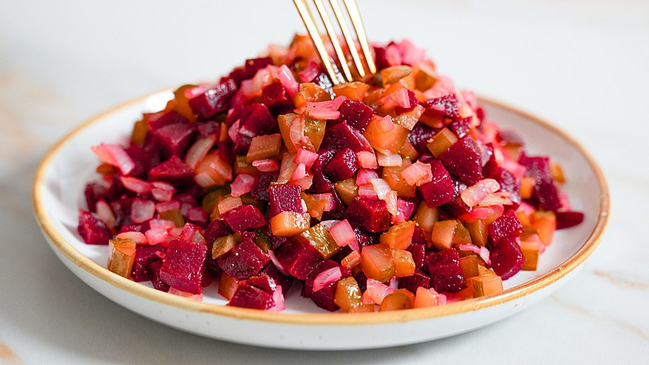 Салат із буряка — страва проста й звична, яку рідко асоціюють зі святковим столом. Комусь до вподоби класичне поєднання з часником і майонезом, інші ж віддають перевагу варіанту з олією та цибулею.