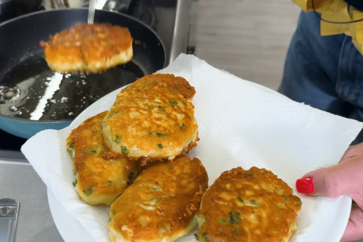 Коли всі інгредієнти будуть готовими, розігріваємо сковороду, вливаємо олію та викладаємо тісто невеликими порціями за допомогою ложки, формуючи пиріжки потрібної вам форми та розміру. Обсмажуємо з обох боків під кришкою. Після смаження обов’язково слід викласти їх на паперові рушники, щоб прибрати зайвий жир.