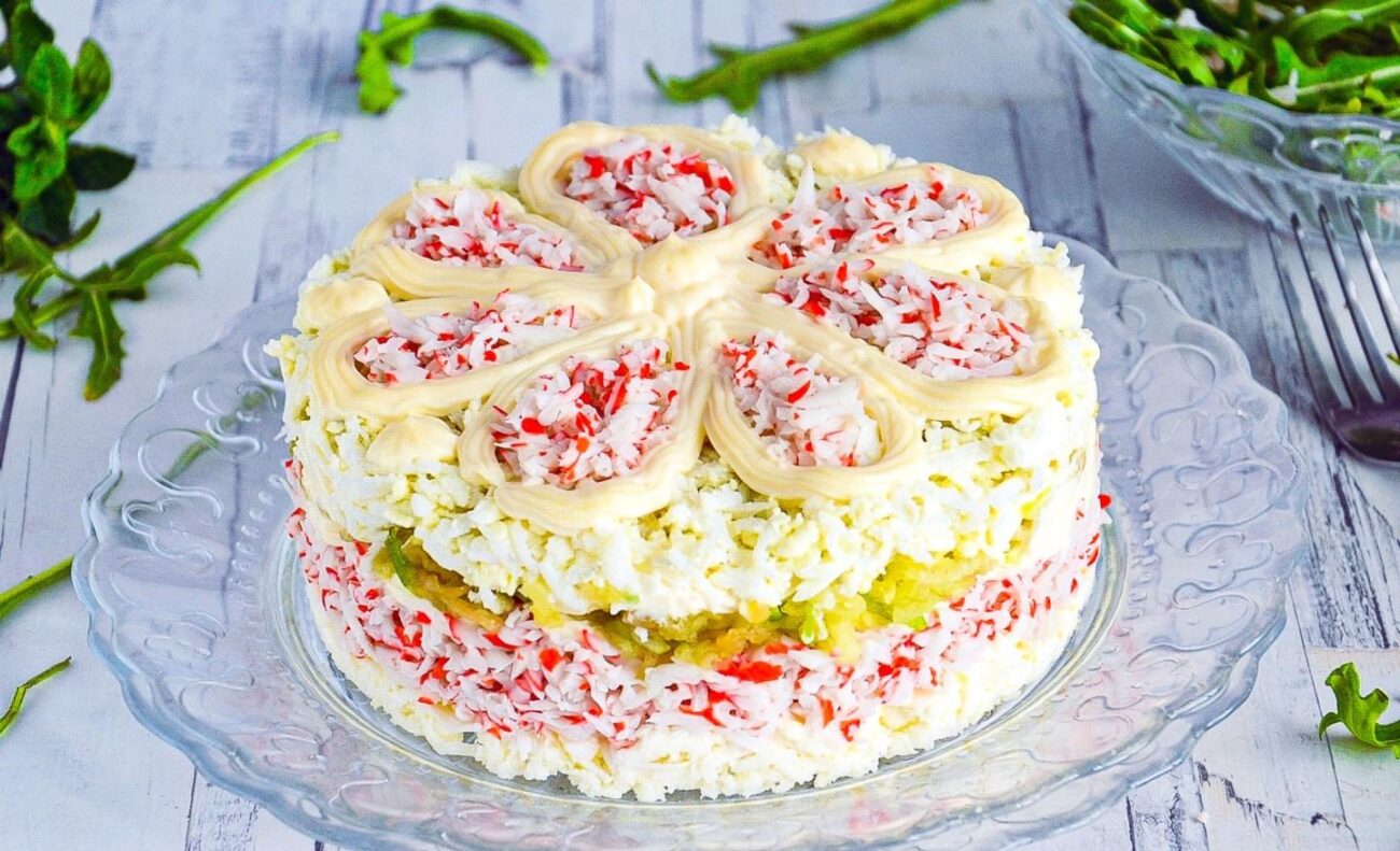 Якщо ви шукаєте ідею для святкового столу — на день народження чи будь-яку іншу подію — придивіться до цього рецепту. Салат бюджетний, готується швидко, а результат приємно дивує. Усього чотири основні продукти плюс майонез — і страва готова.