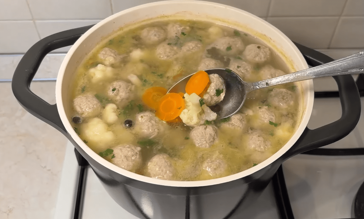 Рецепт швидкого супу за 30 хвилин з фрикадельками та цвітною капустою