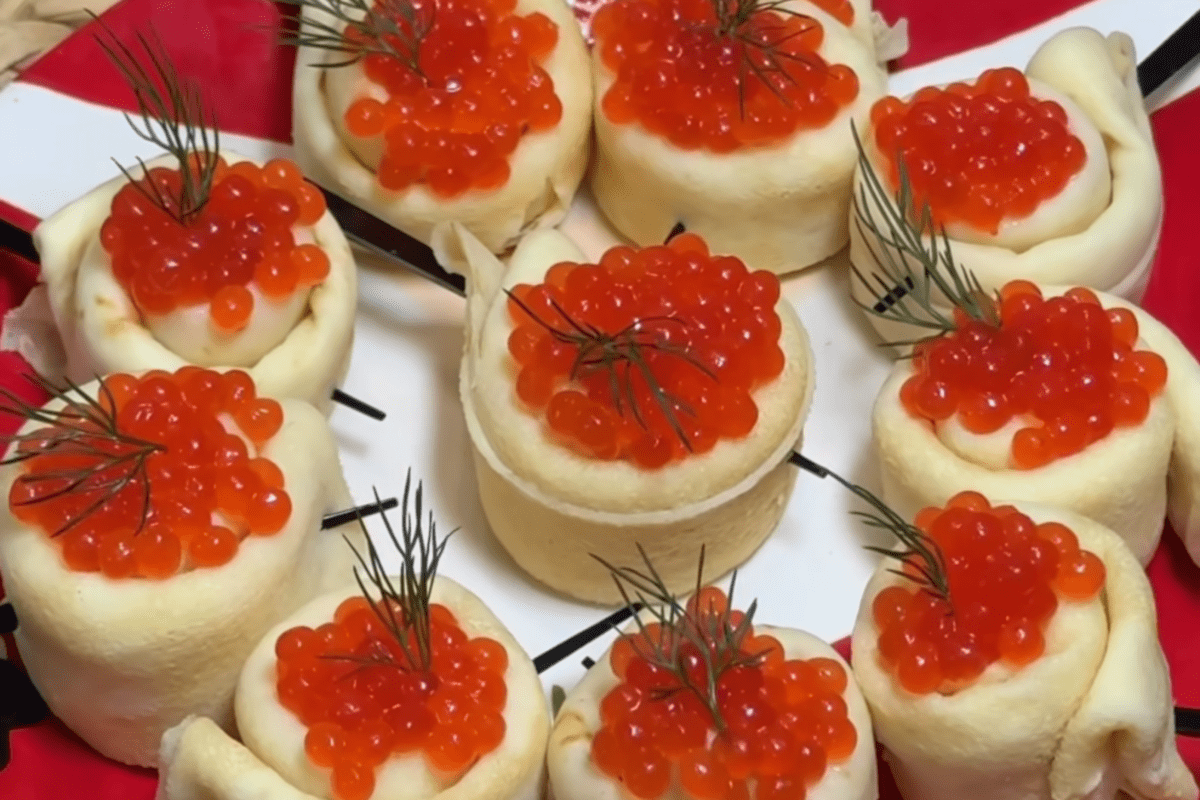 Кулінари поділились рецептом ніжної закуски з млинців і червоної ікри