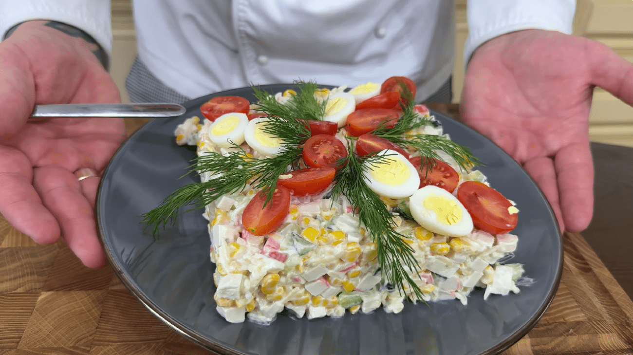 Вже за кілька годин настане Новий 2026 рік, який проходитиме під знаком Вогняного Червоного Коня. Залишилися останні приготування і якщо ви хочете здивувати своїх гостей, то можете приготувати оновлений Крабовий салат, в якому немає краплі майонезу. Результат вас точно здивує!
