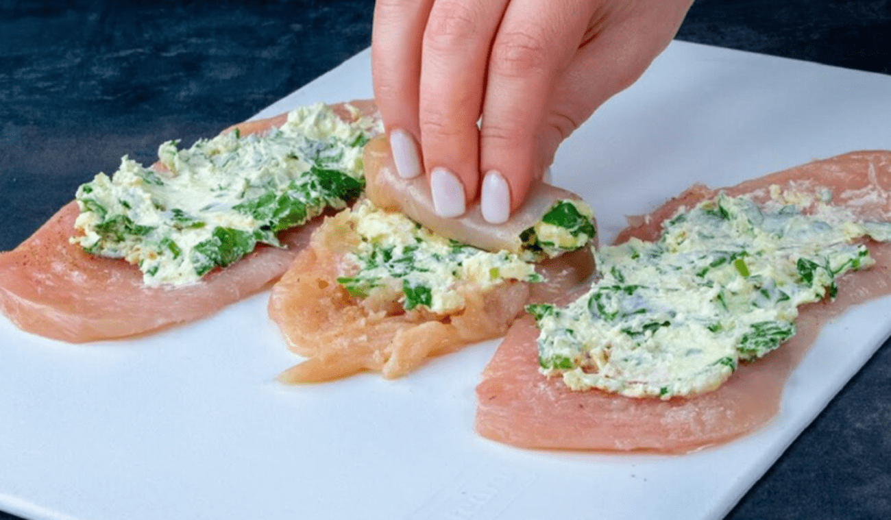 Рецепт соковитих курячих рулетиків з вершковим сиром. Фото: скриншот з відео