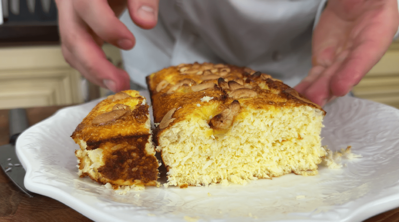 Після того, як ви дістанете десерт із духовки, дайте йому охолонути приблизно 15 хвилин. Потім потрібно акуратно витягти його з форми та подавати до столу. Ось така вийшла краса!
