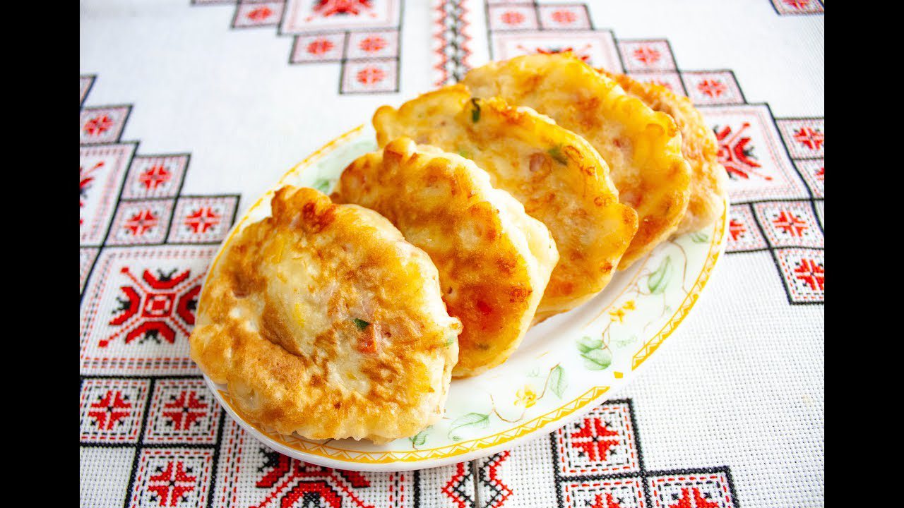 Поставте на вогонь пательню из рослинною олією. Розігрійте і почніть викладати на неї столовою ложкою підготовлене тісто із начинкою. Смажте оладки з обох сторін, допоки вони не стануть рум’яними. Можете робити це під кришкою або ж без неї.