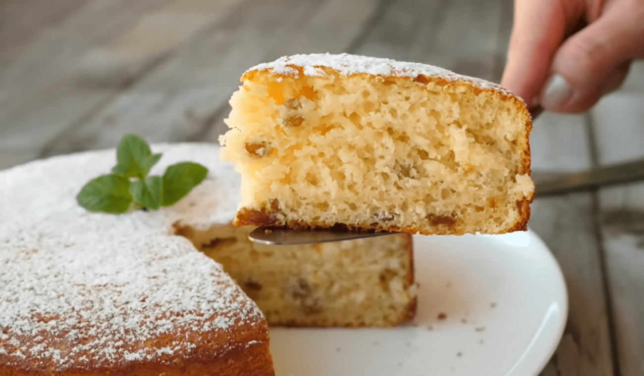 Пиріг виходить дуже смачним і з вологою структурою, наче у ньому є багато вершкового масла, а насправді, у ньому немає навіть олії.