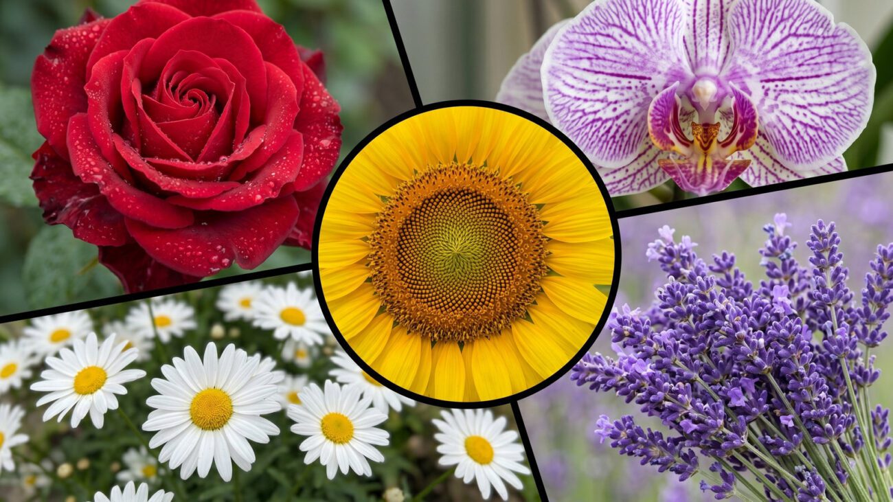 Ось варіанти: троянда, ромашка, орхідея, соняшник, лаванда.