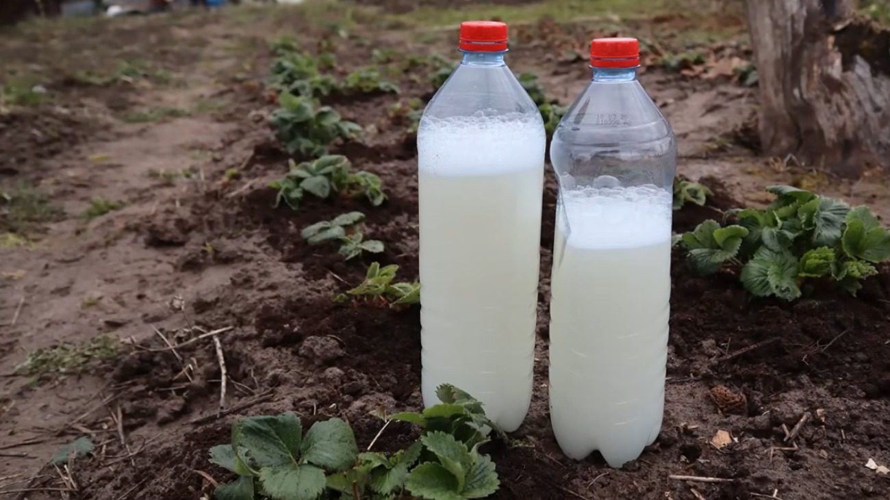 Змішуємо інгредієнти в 10 л води, заливаємо в обприскувач і розпорошуємо полуницю на всі рослини саду.