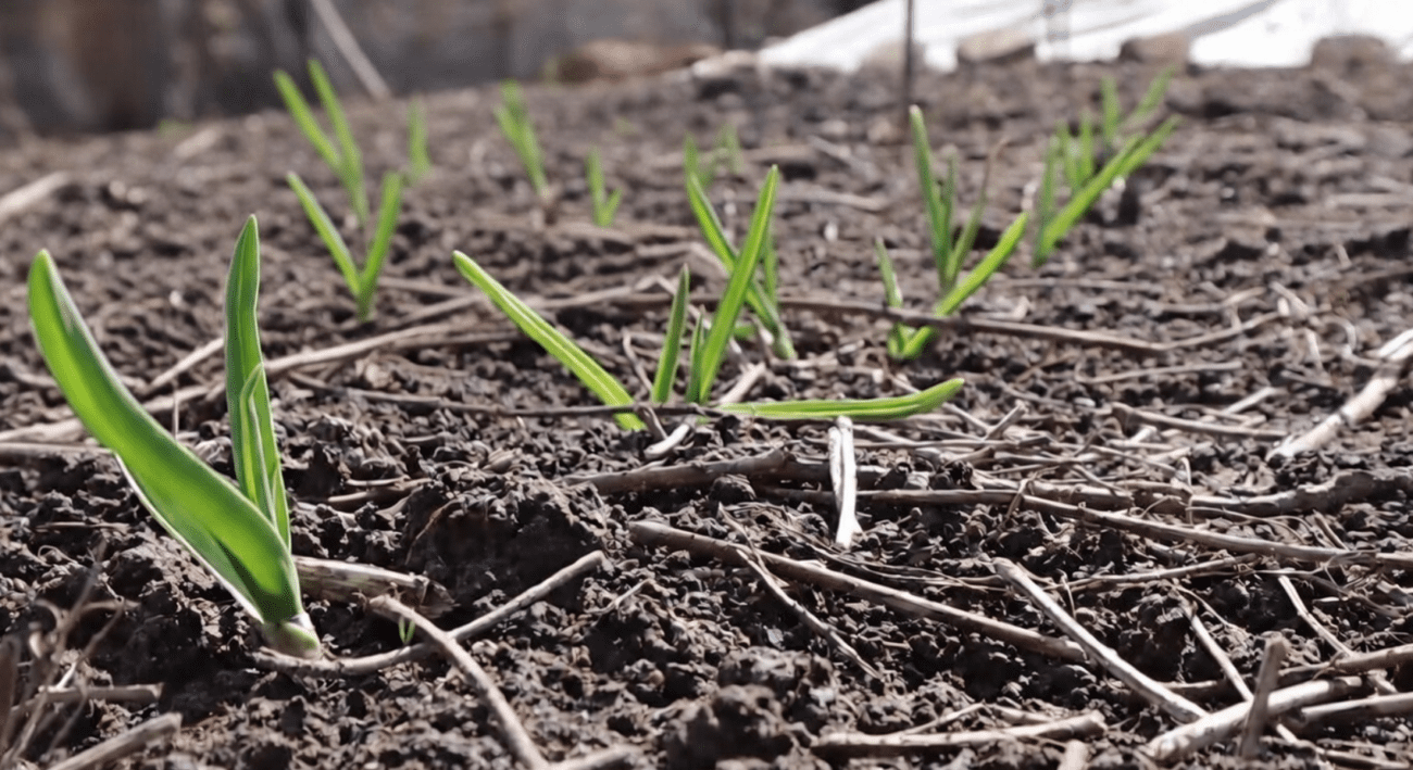 У квітні, коли земля на городі досить прогрілася у багатьох регіонах України, настав час першого весняного підживлення, від якого безпосередньо залежить результат майбутнього врожаю. Але, для початку пройдіться по грядці з цапкою і акуратно розпушіть ґрунт на глибину не нижче 8 см. Глибоко копати не треба, а просто злегка “збийте” верхній шар землі, щоб полегшити доступ повітря до коріння. Таким нехитрим способом ви допоможете озимому часнику швидше прокинутися після довгої зими. Потім наведіть порядок на грядках і приберіть все сміття та бур’яни. Тільки після цих дій приступайте безпосередньо до весняного підживлення.