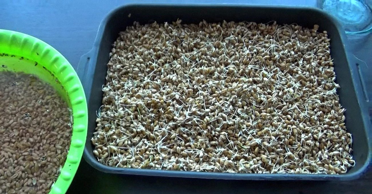 Замочувати можна пшеницю, ячмінь та овес. Для цього треба заливати зерно чистою водою так, що вона покрила всі зерна. Замочувати необхідно близько 6-8 годин. У процесі варто кілька разів змінити воду, бо інакше на зернах може з’явитися запах бродіння, а кури його не дуже люблять. Через 6-8 годин злийте воду та перекладіть зерна до якогось широкого лотка, щоб там вони лежали тонким шаром. Накрийте марлею та покладіть у тепле місце.