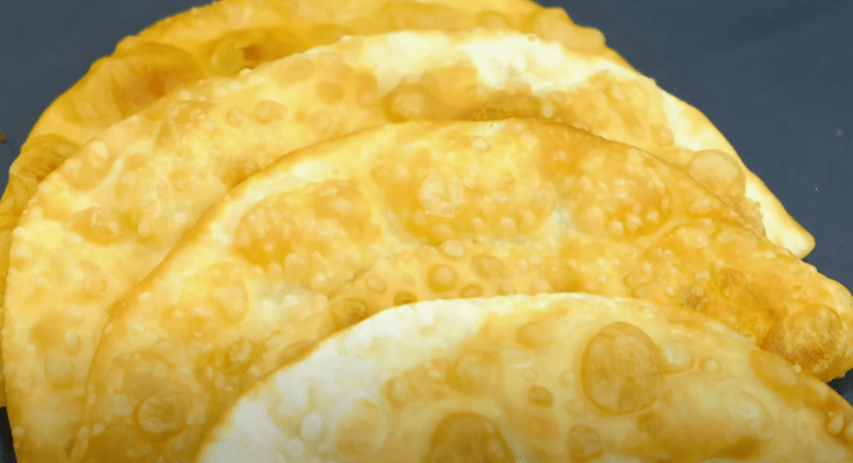 Тепер обсмажуємо чебуреки з обох боків. Потім викладаємо їх на паперовий рушник, щоб забрати зайвий жир.