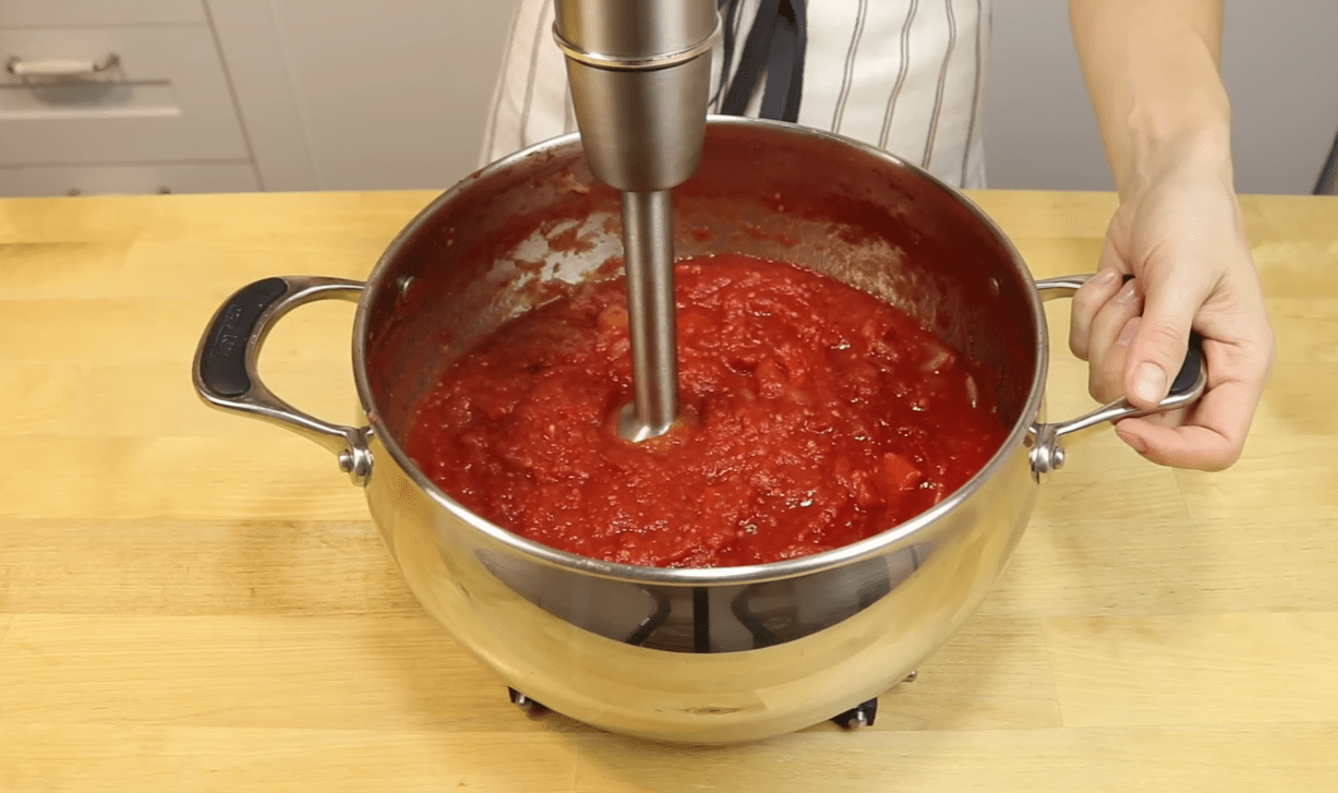 Після того, як овочі зварилися, потрібно ретельно перебити їх занурювальним блендером, а потім масу процідити через сито. Найкраще це зробити 2 рази, тоді консистенція кетчупу буде ідеальною.