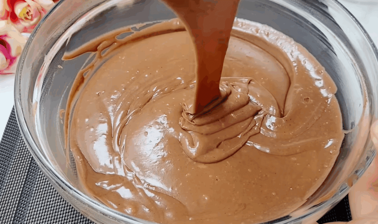 В окремій мисці просіюємо борошно разом із какао-порошком і розпушувачем тіста. Сухі інгредієнти висипаємо до яєчно-кефірної маси. Продовжуємо збивати міксером ще хвилину, поки тісто не стане повністю однорідним і гладеньким, без жодних грудочок.