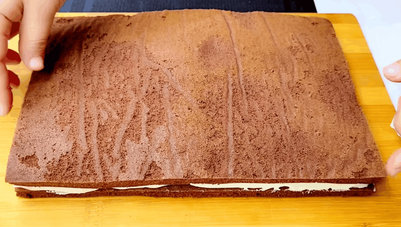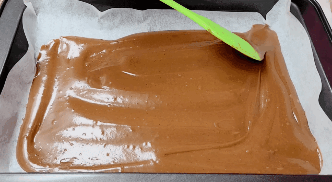 Ділимо тісто на 3 рівні частини. Форму для випікання вистеляємо пергаментним папером і виливаємо туди 1 частину тіста. По черзі випікаємо 3 коржа при температурі 180 градусів 8-10 хвилин.