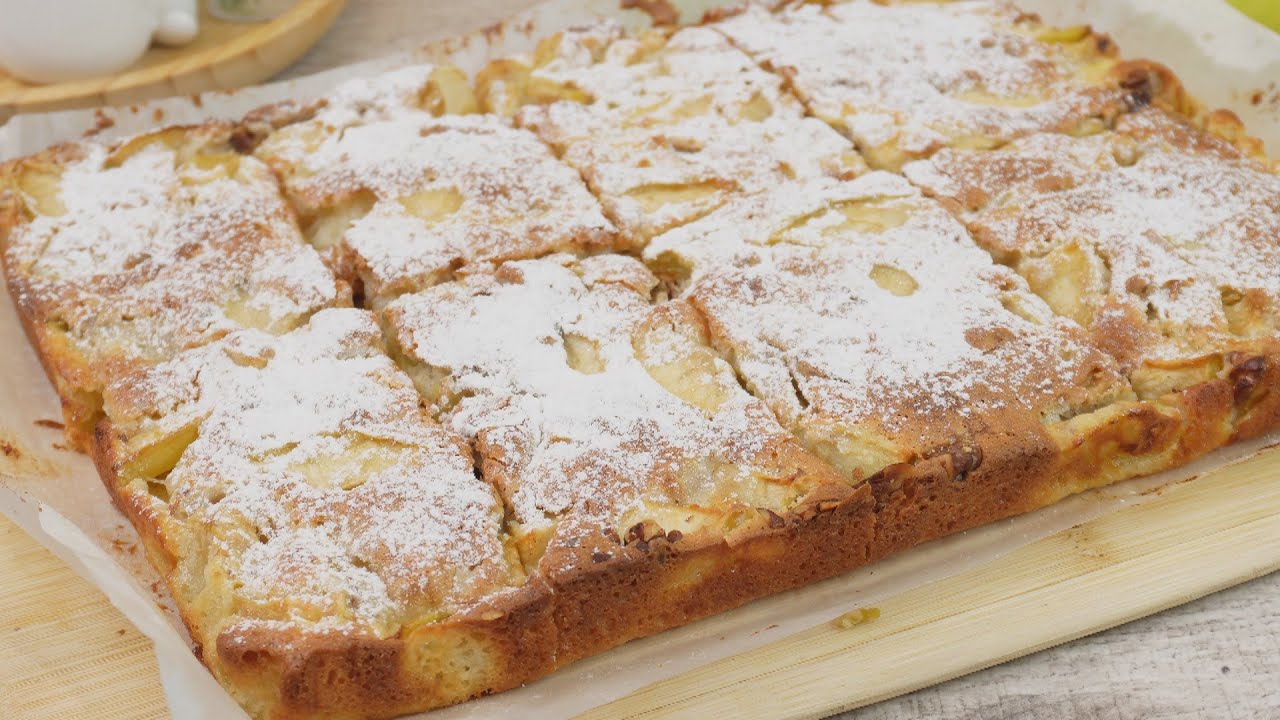 Прості інгредієнти, поєднані у цьому рецепті – перевтілюються на найніжніший десерт, який стане чудовим доповненням до літнього чаювання. Головний секрет успіху цього пирогу полягає у використанні великої кількості яблук, яких в порівнянні із тістом буде набагато більше. Тісто огоротатиме яблука в ніжну, кремоподібну текстуру. При цьому верхній шар фруктів утворюватиме на поверхні чудовий візерунок, який під час запікання карамелізуватиметься.