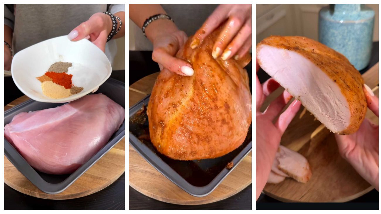 Перше, що варто зробити, це взяти велику та широку миску, висипати туди всі спеції і додати оливкову олію. Таким чином, перемішати спеції в олії. Наступний крок — індичку слід добре обваляти в цьому всьому. Можна залишити на 10-20 хвилин, щоб воно добре просочилося та промаринувалося, а можна цього не робити, й поставити запікатися в духовку одразу. Кулінари переконують, що за час готовки м’ясо й так добре насититься спеціями та буде дуже смачним. Тому, можна не залишати його маринуватися.