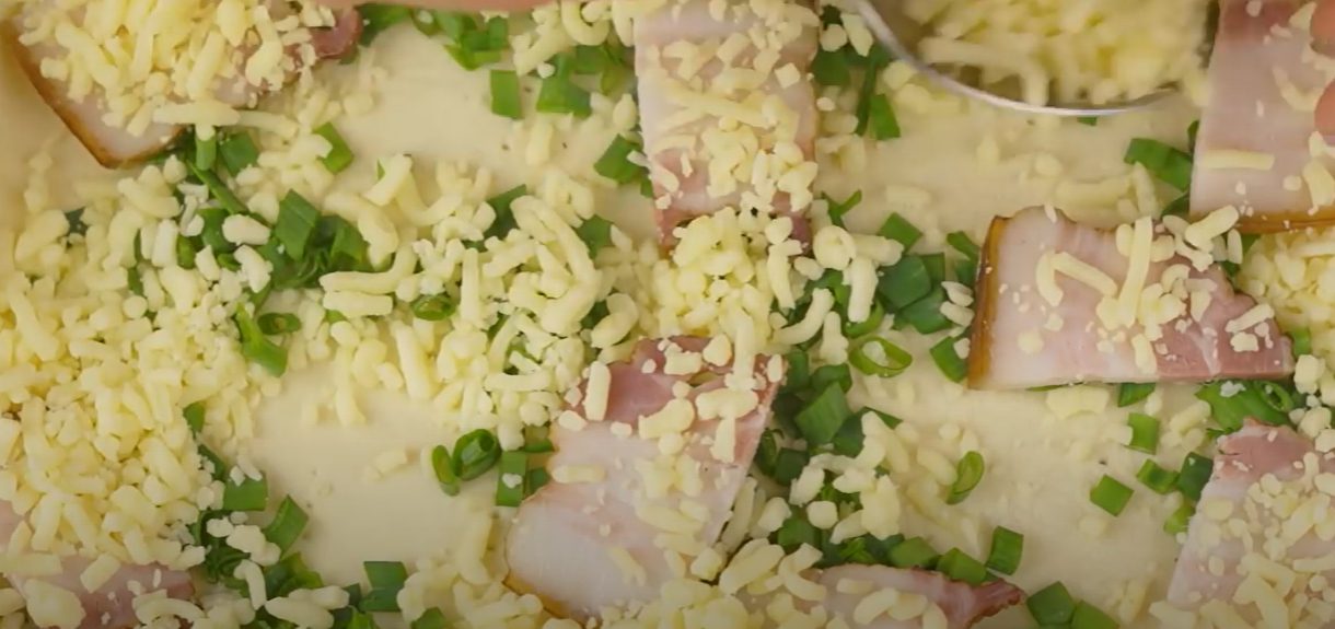Для приготування швидкого сніданку ще з вечора дістаньте листкове тісто з морозилки, щоб розморозилося. Бекон наріжте на тоненькі шматочки. Вимиту та висушену зелену цибулю подрібніть ножем. Моцарелу чи будь-який інший сир натріть на тертушці.