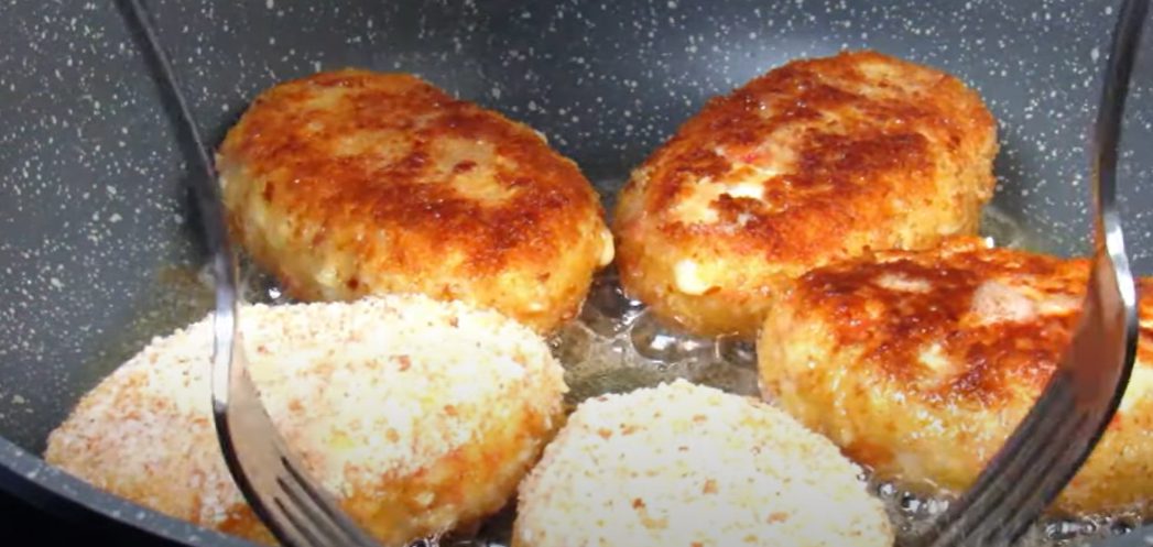 Пательню поставте на плиту, щоб розігрілася, влийте олію. Викладайте наші котлети й смажте на полум’ї вище середнього. Нам потрібна рум’яна скоринка, тому кришкою вироби не накривайте.