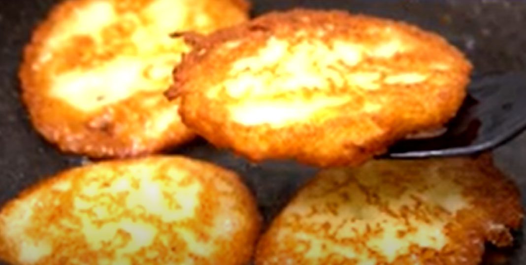 Додайте у це тісто сіль, а от яйця на цей раз не знадобляться. Розігрійте на плиті пательню, в яку налийте олію. Ложкою викладайте однорідну суміш та підсмажуйте млинці. Коли з одного боку з’явиться золотава скоринка, переверніть на інший та доведіть до готовності.
