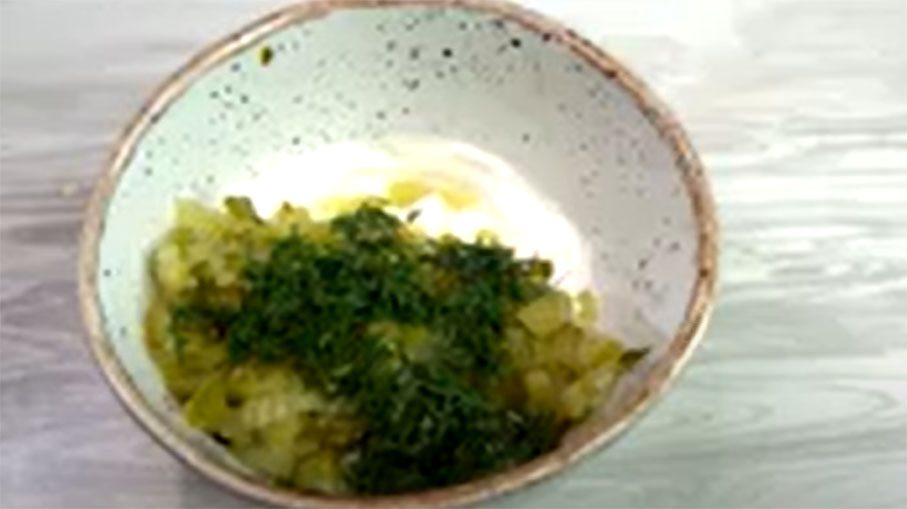 Маринований огірок дрібненько наріжте ножем. Зелень кропу теж подрібніть. Додайте сметану або майонез. Присоліть та поперчіть. Подавайте деруни до столу з таким соусом. Домашні на радощах видадуть вам мішленівську зірку. Напевно, тепер деруни на вашій кухні будуть з’являтися набагато частіше, аніж раніше.