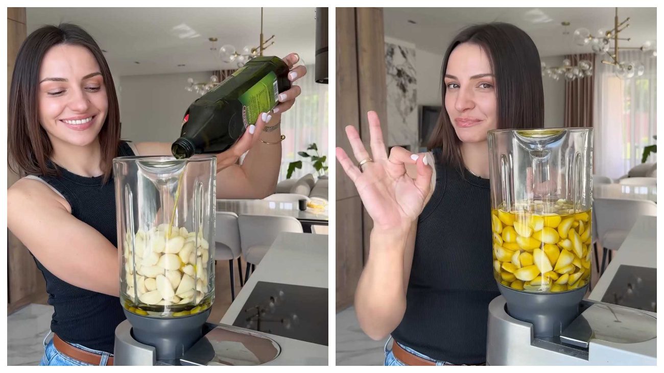 Так, для того, щоб приготувати натуральне часникове масло, господиням знадобиться чимала кількість чищених зубчиків часнику. Насамперед, щоб він займав 50% саме вашого домашнього блендера. Потім його варто залити олією (будь-якою, оливковою, або соняшниковою). В кінцевому результаті, просто взяти й все це ретельно збити блендером. І все, вийде чудове справжнє натуральне масло, яке ще й неабияк підвищує імунітет.