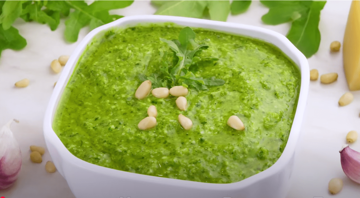 В оригінальному італійському рецепті знаменитий соус Песто готують із базиліку. Однак його також можна легко приготувати з петрушки, шпинату, руколи, крес-салату, черемші з іншої ароматної зелені. Деякі господині пішли далі і почали готувати Песто зі стрілок часнику і навіть із кропиви. У цьому рецепті один із подібних варіантів Песто.