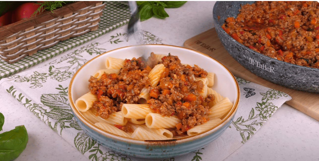 Італійці славляться своєю кухнею. Особливо пастою з традиційним соусом Болоньєзе, які подають зі спагеті. Поєднання вареного тіста з м’ясом – це неймовірно вдала знахідка, яку почали застосовувати італійці сотні років тому. То чому б не поекспериментувати? – подумали українські господині та запропонували свій рецепт. Вони замінили всього один інгредієнт і вийшло дуже смачно.