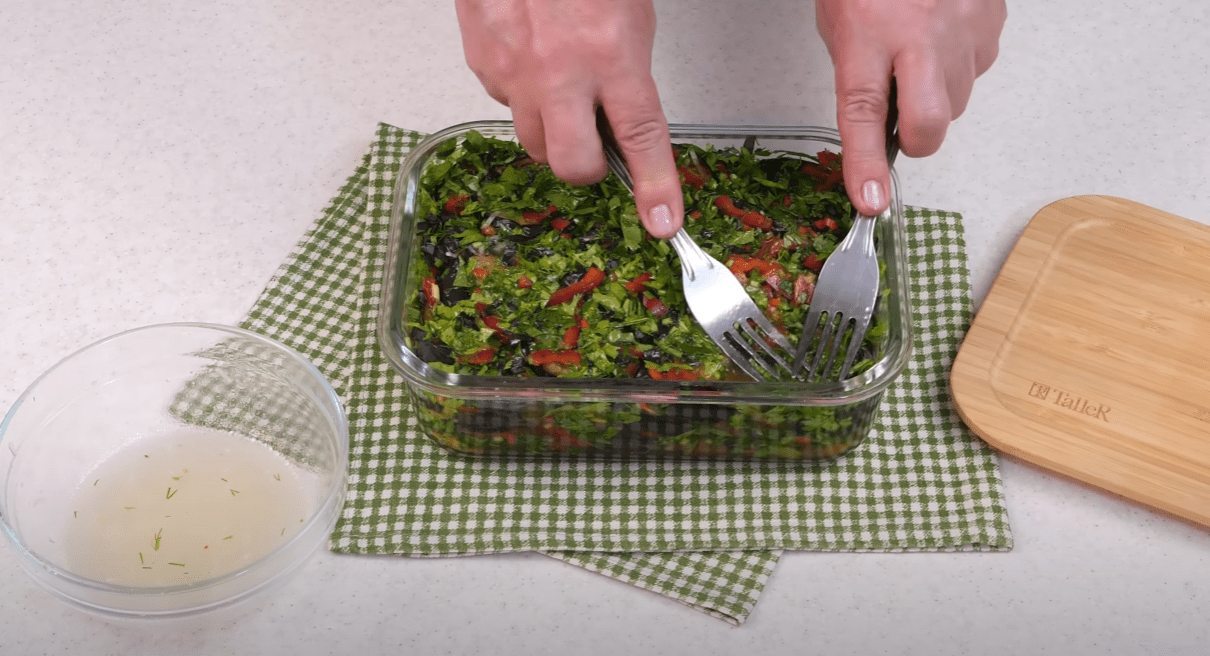 Підготуйте ємність, в яку складатимете, а потім зберігатимете готову закуску.