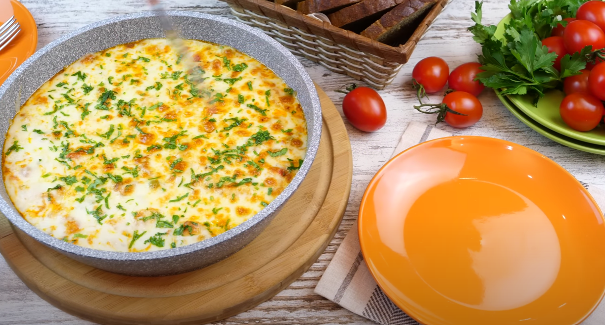 Можна подати страву в такому вигляді, але якщо ви любите сирну скоринку, то можна посипати натертим на крупній тертці сир і запекти. Через 5 хвилин можна діставати та подавати на стіл.