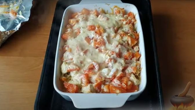 Цей рецепт з макаронами особливо цінується за простоту: достатньо всього кілька інгредієнтів, щоб створити гарячу, ароматну і ніжну страву. Найцікавіше, що процес практично не вимагає підготовки — продукти змішуються прямо у формі для запікання, що економить час і мінімізує миття посуду.