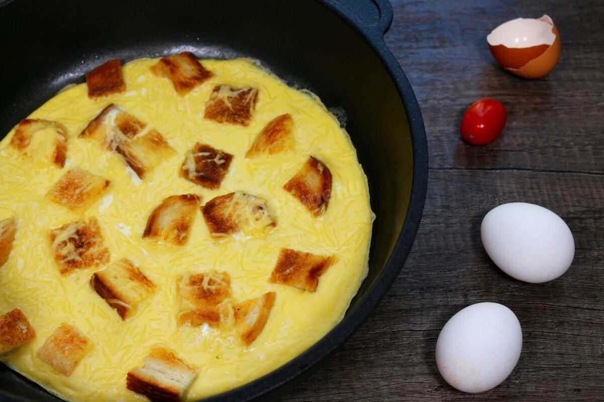 Особливо це актуально, коли не хочеться довго готувати, а в холодильнику мінімум продуктів. Один простий кулінарний прийом дозволяє створити апетитний омлет із хрумкими кубиками хліба, який за смаком не поступається ресторанним сніданкам.