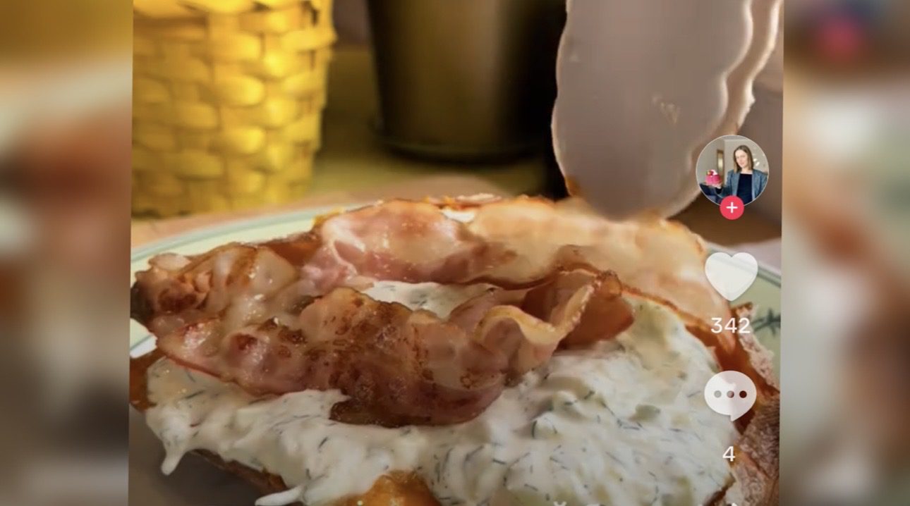 Бекон у цій страві виконує важливу роль: він додає солонуватий, димний смак і хрустку текстуру, яка контрастує з ніжним бататом. Під час запікання жир із бекону частково просочує овоч, роблячи його ще більш ароматним і насиченим.