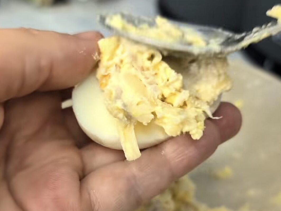 Секрет смачних фаршированих яєць — у балансі кремової начинки та легкої пікантності. Отриманою масою наповнюють білкові половинки. Це можна зробити ложкою або кондитерським мішком — так страва виглядатиме більш святково.